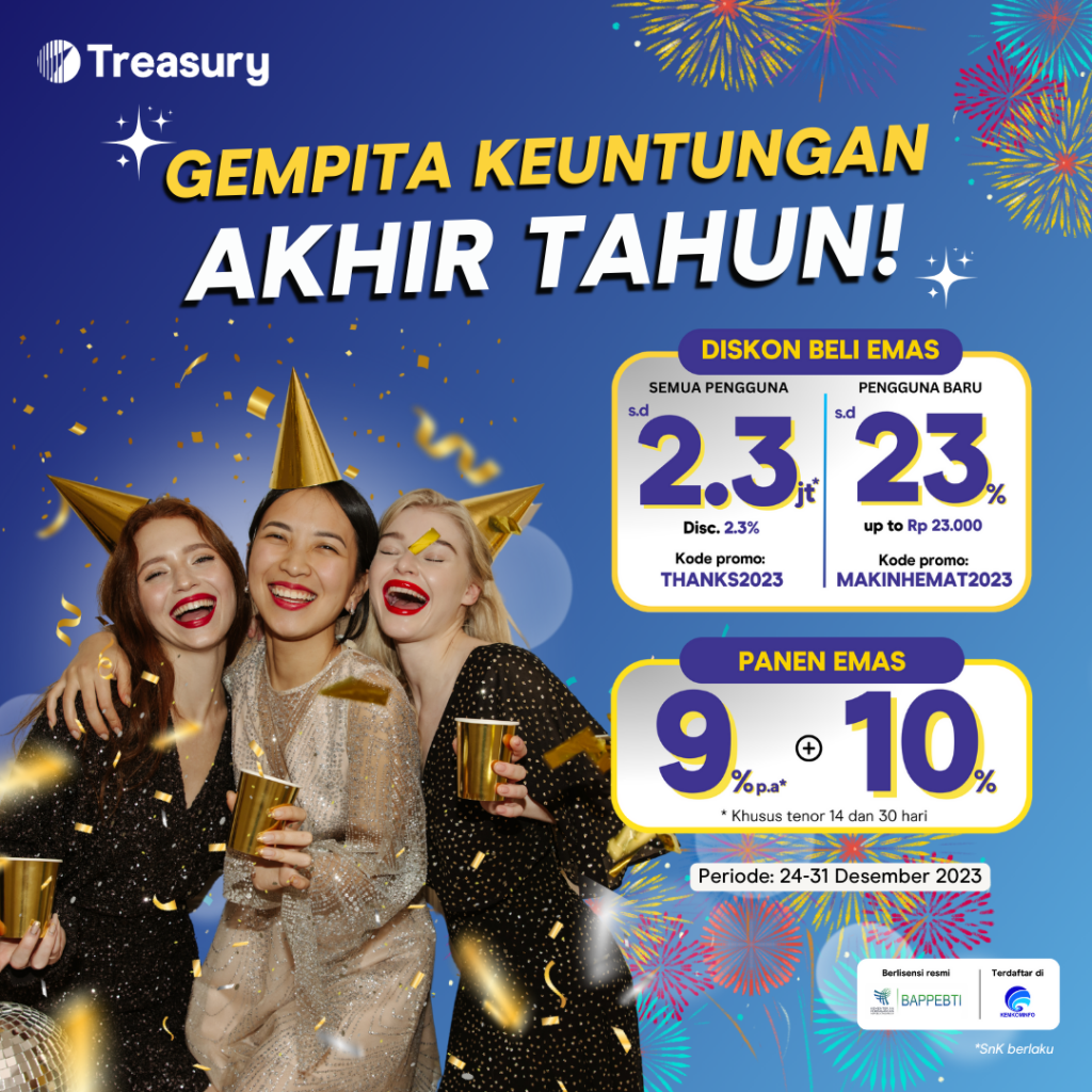 - “Promo Akhir Tahun” adalah promo diskon pembelian Emas melalui menu Beli Emas pada Apps Treasury;