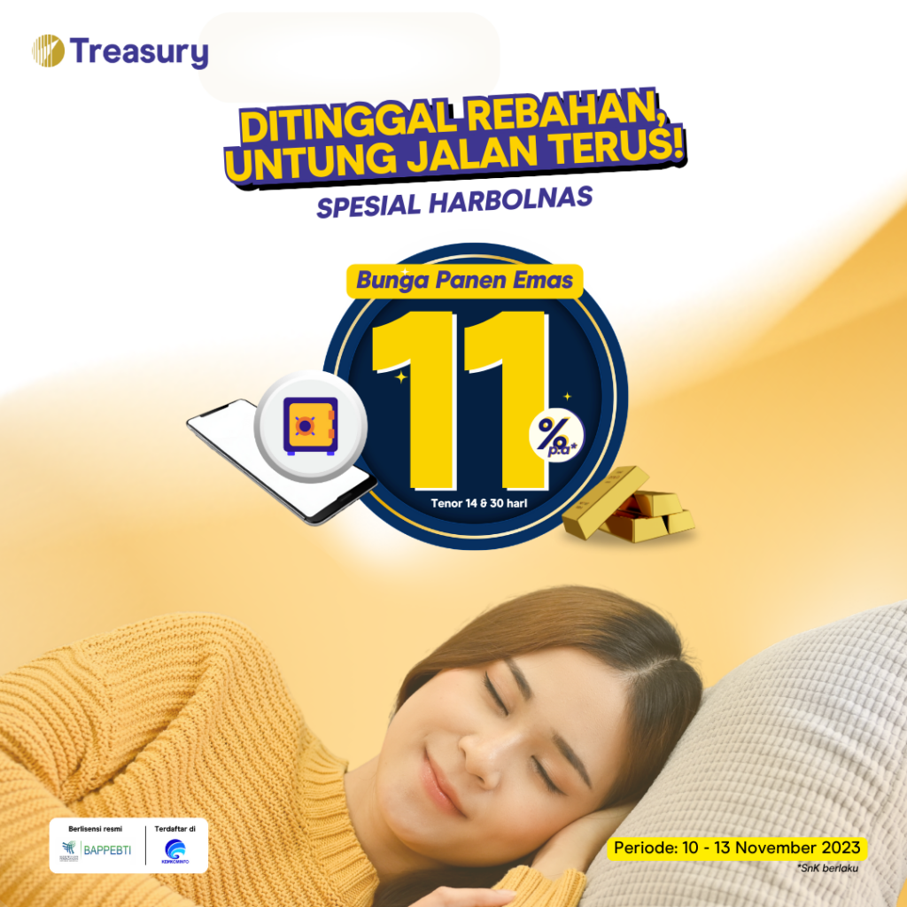 - Dengan berpartisipasi dalam Promo Panen Emas Harbolnas, Pengguna Treasury dianggap telah mengetahui, membaca, memahami, dan menyetujui seluruh ketentuan yang ada;
