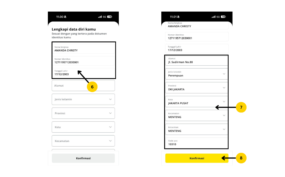 - Akan langsung muncul halaman lengkapi data diri saat redirect kembali ke aplikasi Treasury. Data nama lengkap, nomor identitas, dan tanggal lahir ditampilkan sesuai data Privy