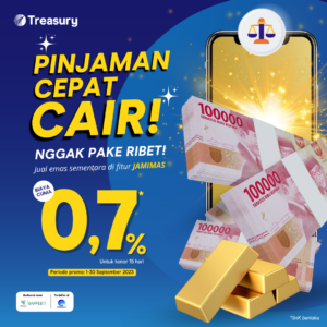 Kalau tertarik investasi emas, kamu bisa menjajal aplikasi emas digital seperti Treasury. Aplikasi ini menyediakan emas dengan harga yang sangat terjangkau. Sobat bisa membeli emas mulai dari Rp5 ribu. Lebih murah daripada semangkok bakso urat, kan?